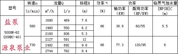 500HW混流泵的性能參數(shù) |
